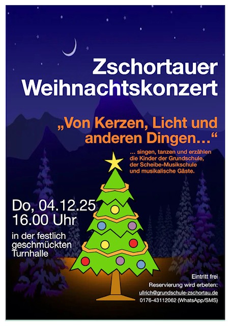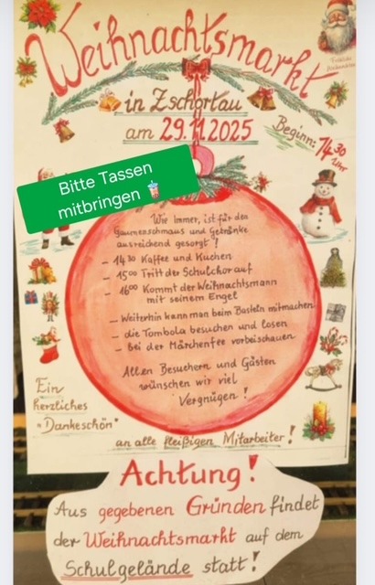 Am 29.11. findet der Zschortauer Weihnachtsmarkt auf dem Schulgelände statt. Kommen Sie gern vorbei!